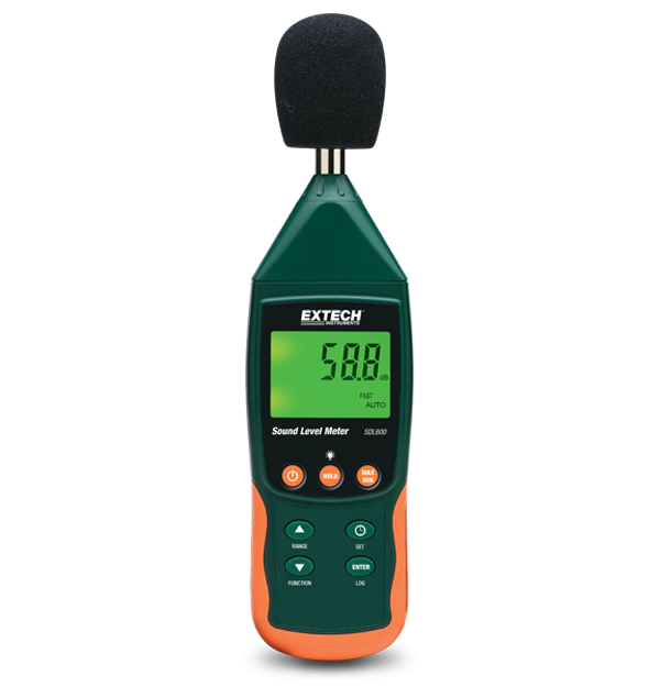 The SDL600 records data on an SD card in Excel format. High accuracy ±1.4dB meets ANSI and IEC 61672-1 Type 2 standards. 30 to 130dB measurement range. Auto or Manual ranging. AC analog output for connection to an analyzer or recorder. Large backlit LCD display. Stores 99 readings manually and 20M readings via 2G SD card. Datalogger date/time stamps and stores readings on an SD card in Excel format for easy transfer to a PC. User programmable sampling rate from 1 to 3600 seconds. Featuring Min/Max, Data Hold, and Auto Power Off functions. Complete with 6 AA batteries, SD Card, wind screen, and hard carrying case.
