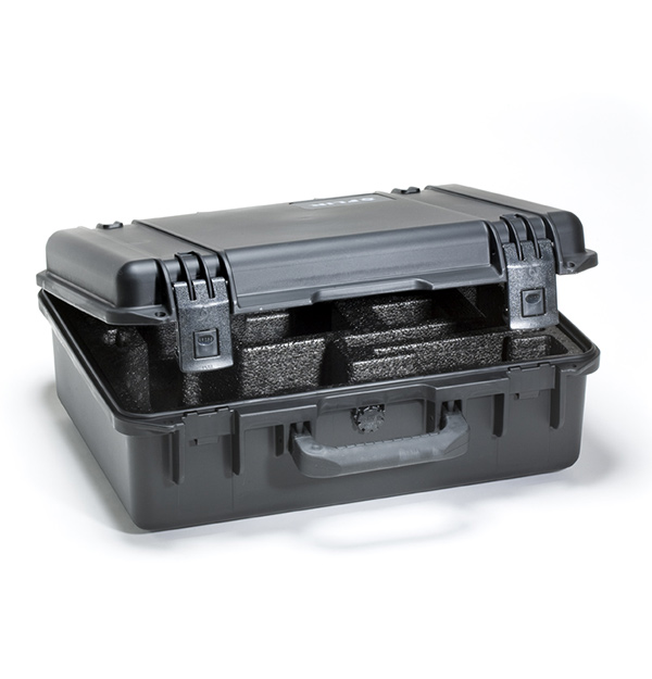 Rugged, watertight plastic transport case for FLIR GFx3xx- and FLIR GF6xx-Series cameras. Holds all items neatly and securely. The case features a membrane to prevent pressure build-up in airplane cargo holds.