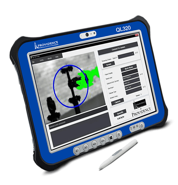 The QL320 by Providence Photonics is a quantitative optical gas imaging (QOGI) system that allows surveyors to measure the leak rates for methane and other hydrocarbons. This eliminates the need for secondary sampling with a toxic vapor analyzer or similar tool. Plus, the QL320 does not require close contact with the gas in order to measure emission rates, making it a safer solution for quantifying gas leaks.